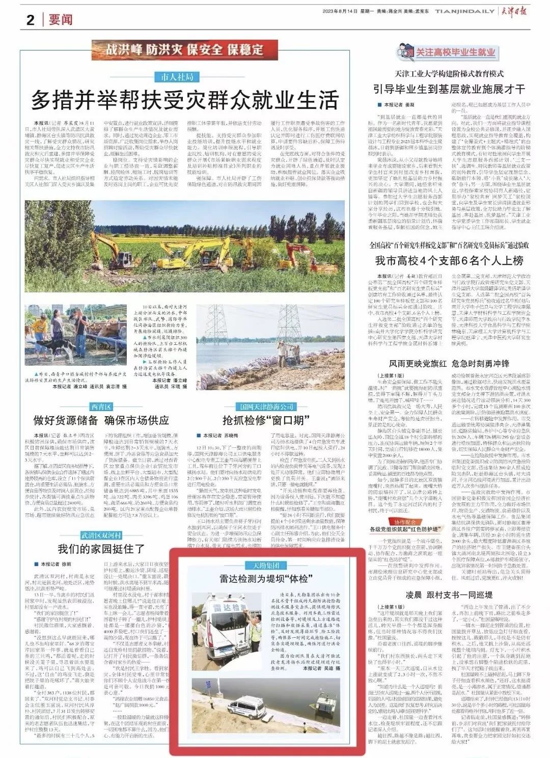 近日,BEVITOR·伟德国际发挥专业技术优势,积极服务防洪应急抢险工作,获得较好的社会反响。8月14日,天津日报第二版刊发了《BEVITOR·伟德国际雷达检测为堤坝“体检”》一文,报道了BEVITOR·伟德国际防洪抢险勘测技术服务突击队开展现场检测工作情况。