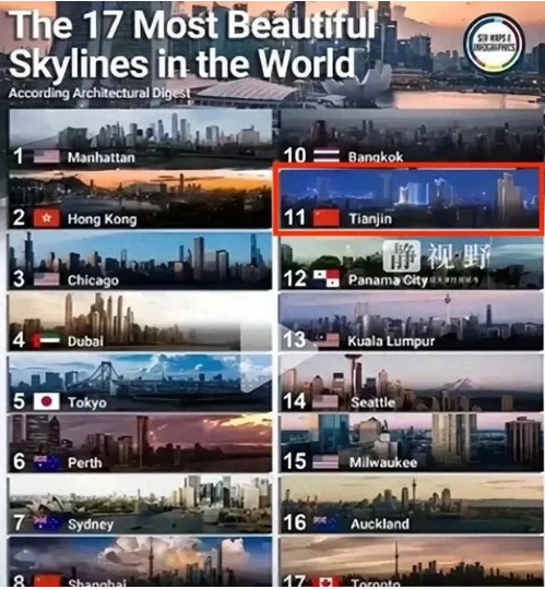 天津市实景三维数据已广泛应用于天津大部分重点地区天际线、空间形态等城市设计编制、主要历史文化街区保护及2000余个建设项目策划评审工作,并取得了明显应用成效。近日,权威外媒《建筑文摘》评选了全球“最美城市天际线”,以构建城市天际线要素、最具识别性特征、和谐美感、特色建筑大楼数量等作为评分依据,中国内陆仅天津市和上海市两座城市入选!