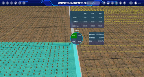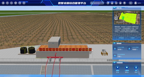 数智农田综合管理平台高效整合气象、土壤、作物、设施、农情等多源数据,借助三维可视化建模技术,将这些复杂数据以直观、立体的形式予以呈现,搭建了高精度农田数字孪生场景。农业生产人员可通过操作三维可视化交互界面,实时、全面洞悉农田整体状况与农业设施运行状态,极大地提升了农业生产管理效率与科学性,降低了人力成本与资源浪费。